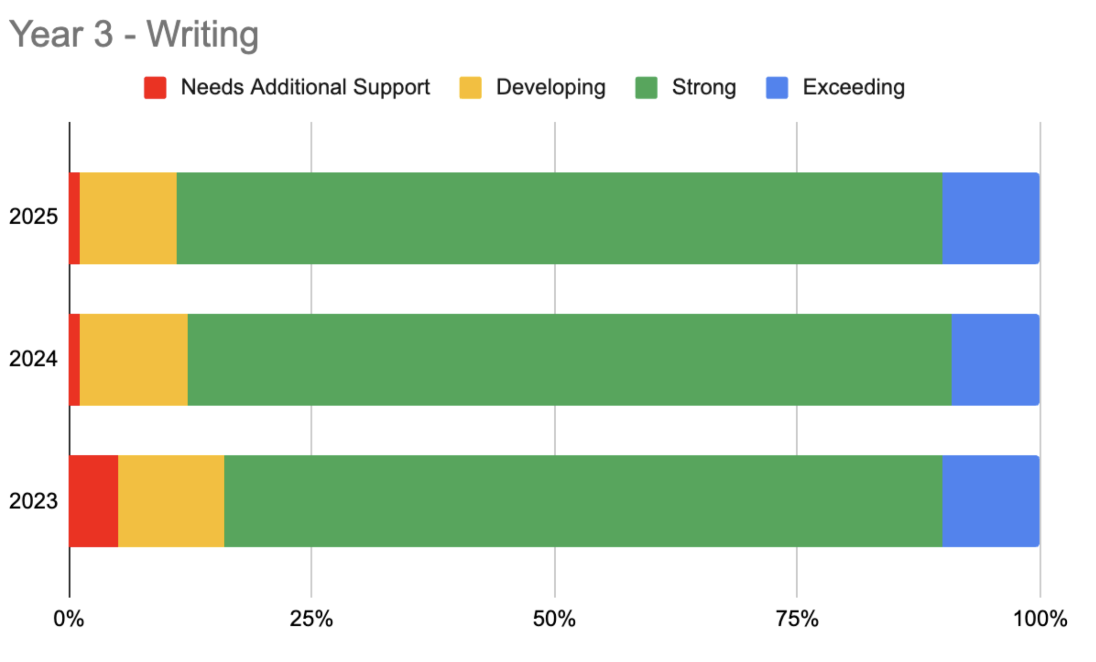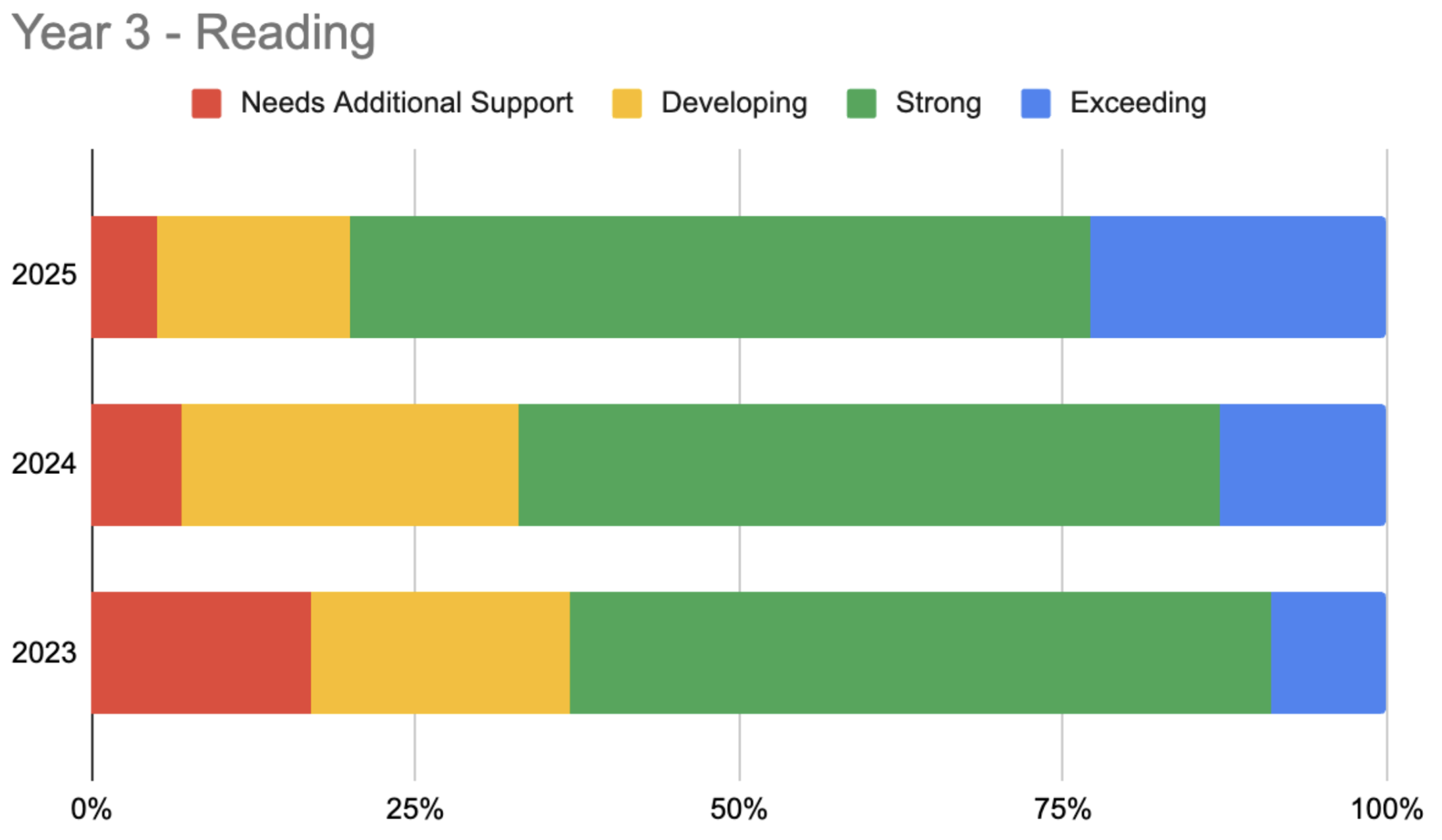 We have seen a steady decrease in the number of students in the ‘Needs Additional Support’ and ‘Developing’ categories since the introduction of Knowledge Rich curriculum.
