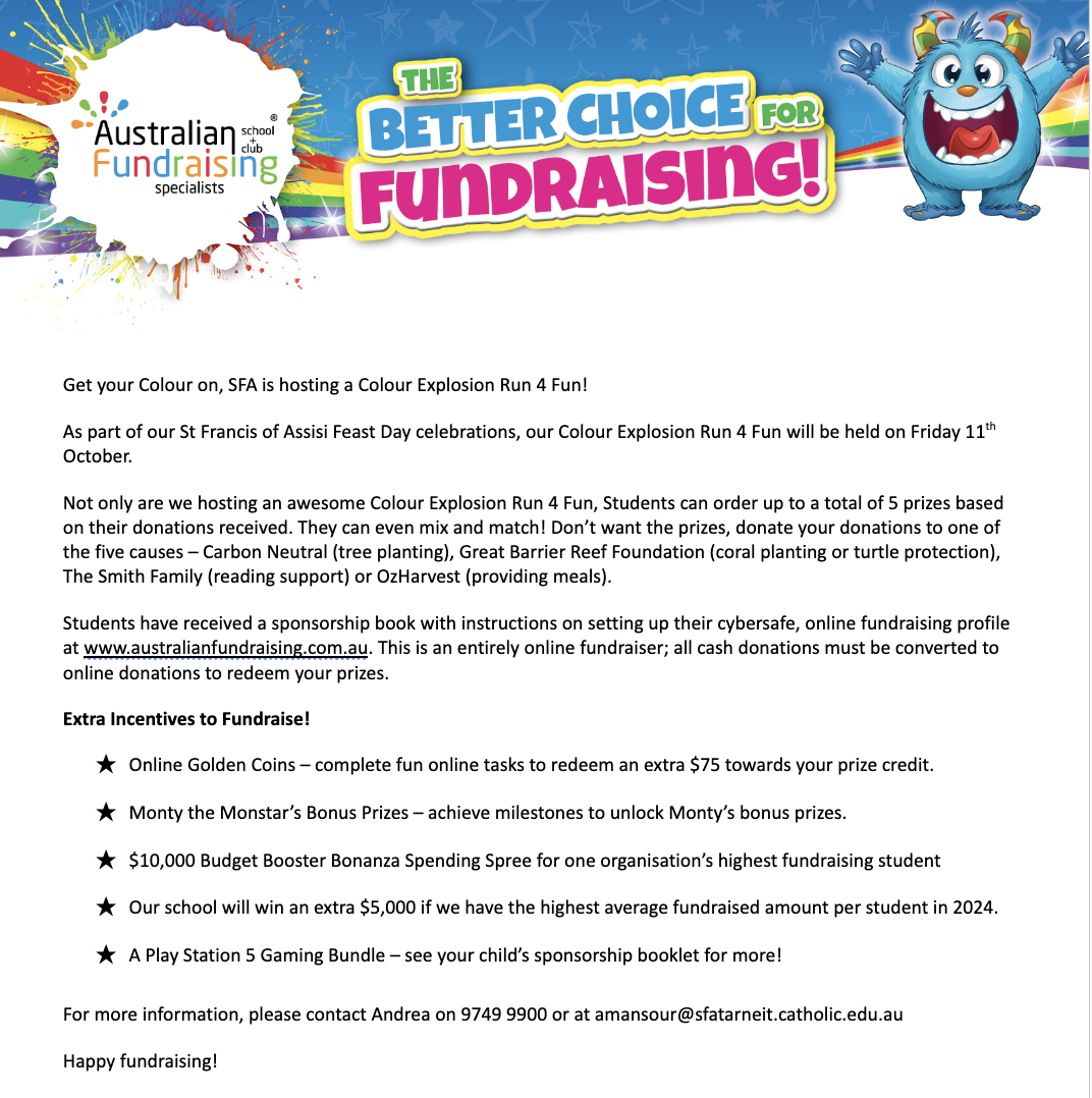 St Francis of Assisi Feast Day Celebrations Oct 11th - join us for our Colour Run